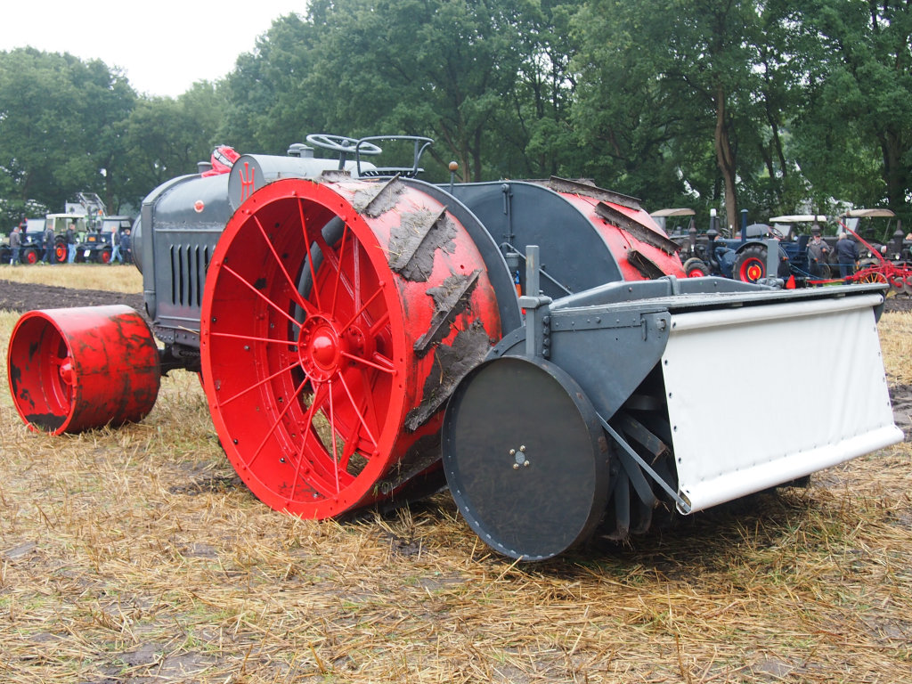 L: Ein Landbaumotor Lanz, System Köszegi, der Sandboden bearbeitet.