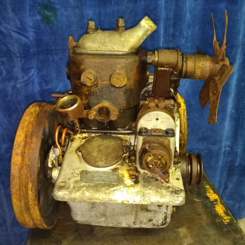 "Ich habe vor kurzem diesen Siemens M2-Motor bekommen. Niemand wusste, was das war. Ich habe es erst gelöst, nachdem jemand auf einer Website für Oldtimermotoren das S&H-Logo erkannte. Das Motorschild ist korrodiert und schwer zu lesen. Es scheint sich um einen tragbaren Generatortyp mit Feindrehzahlregelung in einem Schnellspannrahmen zu handeln. Ich bin in Großbritannien und, wenn ich ehrlich bin, werde ich nicht dazu kommen, ihn zu reparieren, also ist er verfügbar. Ich habe auch die Startkurbel. Er ist ziemlich vollständig, nicht vereist, mit Kühler, aber ohne Magnetzünder."