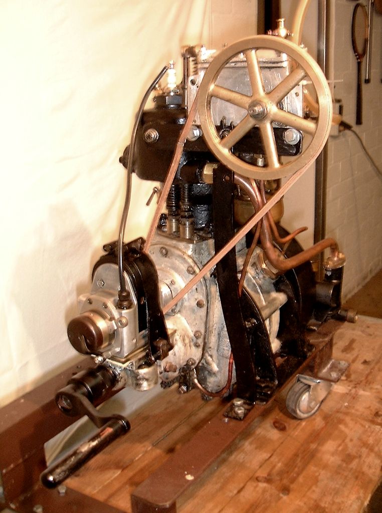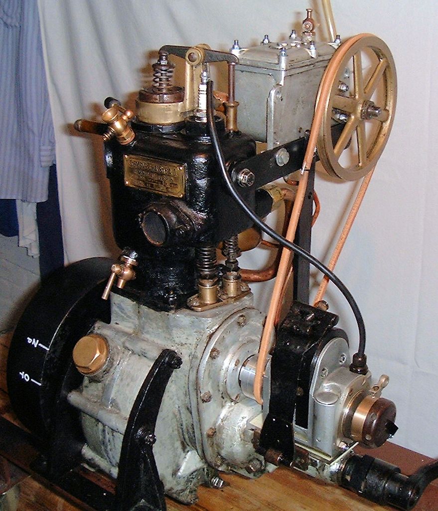 Im letzten Jahrzehnt vor dem Kriege [1914-1918] stellte sich ständig wachsend ein erheblicher Bedarf an beweglichen Licht- bzw. Kraftquellen ein. Bei der Konstruktion der dazu erforderlichen Motoren war eine Anlehnung an die Bauart der gebräuchlichen kleinen ortsfesten Motoren nicht erwünscht, da die Ausführung zu schwer war und der Verwendungszweck einen Motor von möglichst geringem Gewicht und größter Betriebssicherheit vorschrieb. Es war daher naheliegend, daß man der Konstruktion den allgemeinen Aufbau der Automobil-Motoren zugrunde legte. Anfänglich gelangten hauptsächlich Einzylinder-Motoren zur Verwendung.
